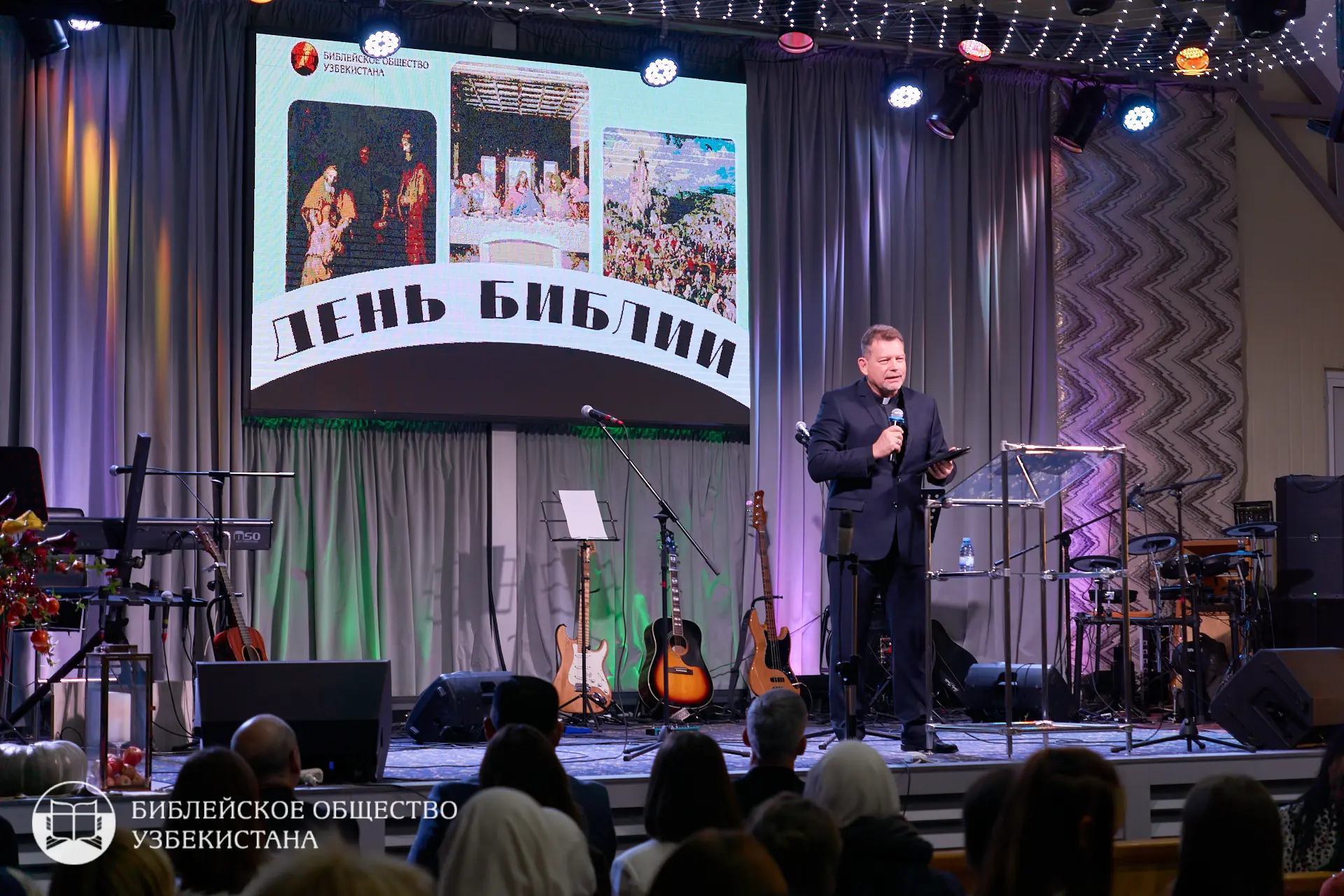Праздник открыл пастор Ташкентской городской церкви Христа Камиль Мусаханов, который зачитал поздравление от старшего пастора Дениса Михаловича Подорожного. Ведущим вечера был Попов Егор Алексеевич, исполнительный директор Библейского Общества Узбекистана, который координировал программу и поочерёдно приглашал на сцену представителей разных конфессий. После приветствия и открытия на сцену последовательно поднимались официальные гости и духовные лидеры — каждое выступление воспринималось как отдельное свидетельство о роли Библии в жизни верующих и общества в целом.