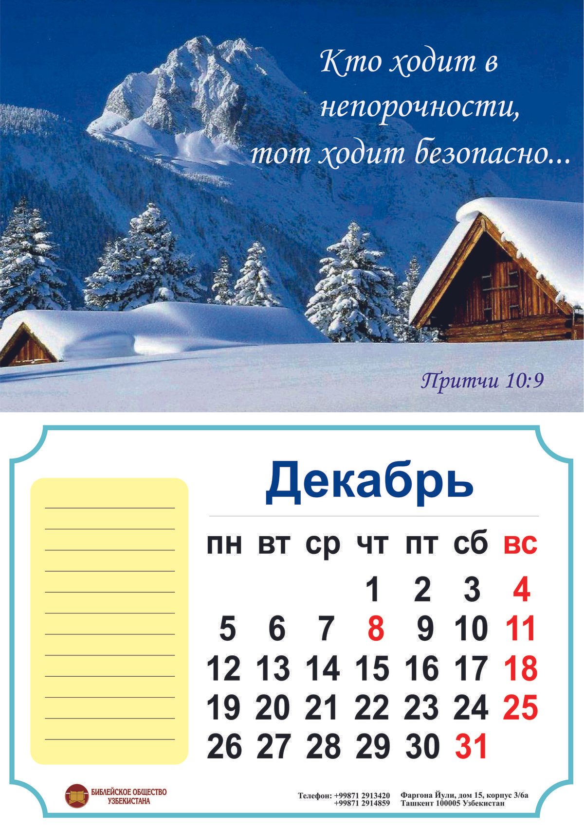 Также для вашего удобства перед Новым годом и Рождеством наше Библейское Общество будет работать с понедельника по субботу с 9:00 до 17:30