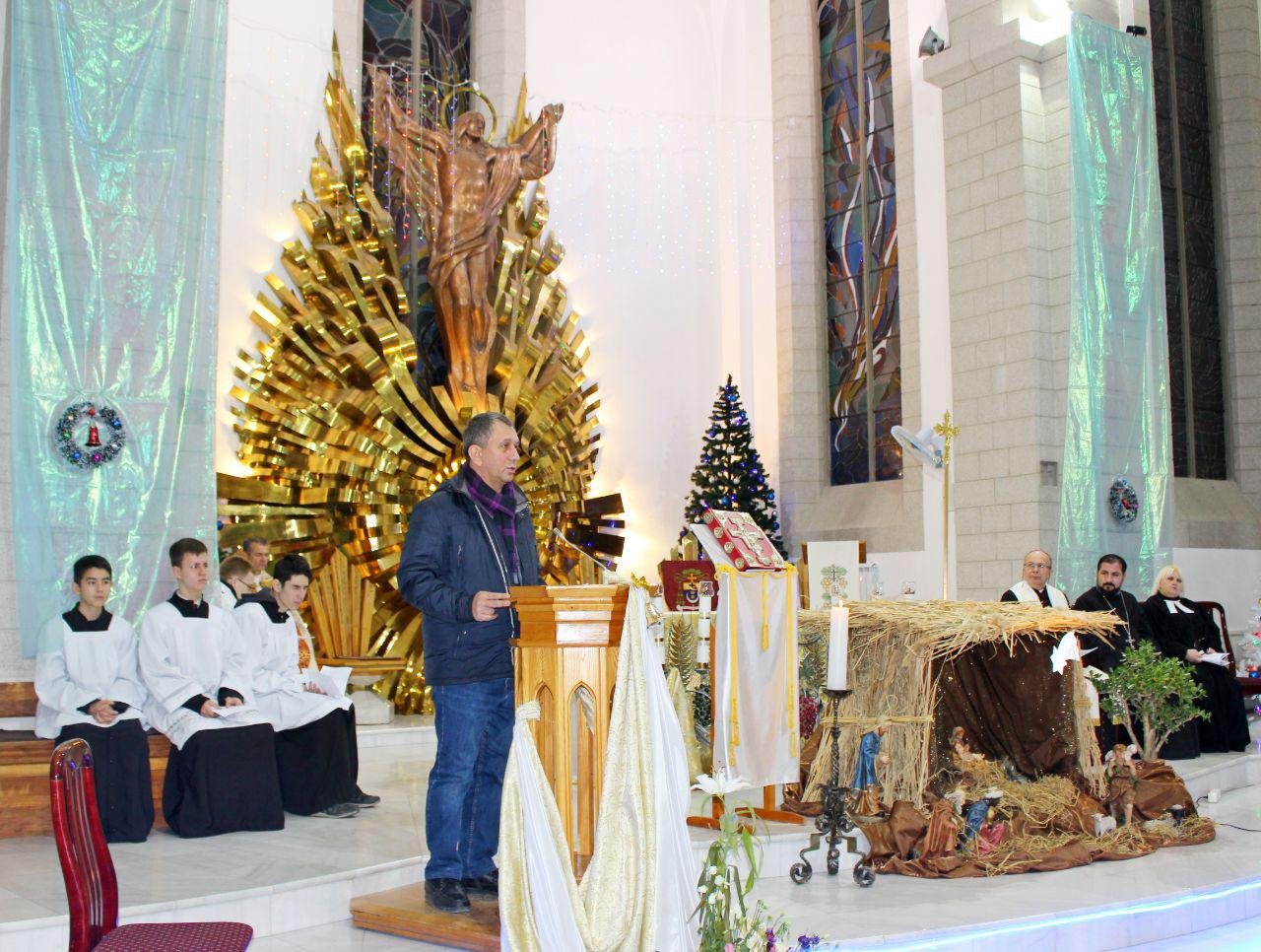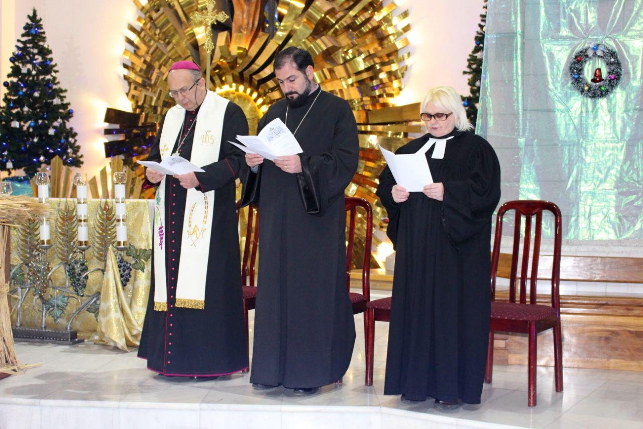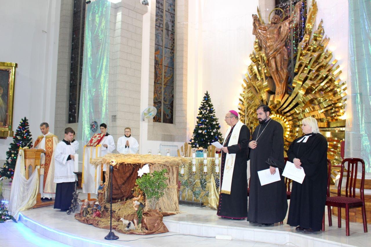 На богослужении в Приходе Святейшего Сердца Иисуса (Католическом храме) собрались представители церквей разных деноминаций. Непосредственно участвовали в мероприятии служители Католической, Лютеранской, Армянской Апостольской церквей, представители Центра Христиан полного Евангелия РУз. и Библейского Общества Узбекистана.